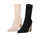 SEGGNICE Sexy Sock Boots Knitting Stretch Boots High Heels For Women Fashion Shoes 2020 Spring Autumn Ankle Boots Booties Female