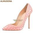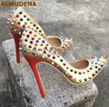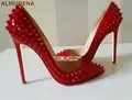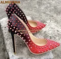 Good Chance for ALMUDENA 8 10 12cm Stiletto Heels Rivets Pointed Toe Shoes Red Pink Black Studded Wedding Shoes Ful