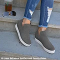 Women Hidden Wedge Ankle Boots Casual Slip on Winter Platform Sneakers Fashion Comfy Elasticity Suede Leather Bootie Female
