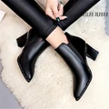Winter European new style velvet boots pointed shoes, high boots high heels Martin boots, female sleeves, thick and short boots.