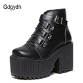 Limited Price of Gdgydh Leather Round Toe High Heel Boots Women Shoes Buckle Rubber Sole Black Platform Shoes Autumn
