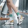 Smile Circle Sneakers Women Flat Shoes 2019 spring Genuine Leather Breathable knitting Casual Ladies Platform Lightweight Shoes