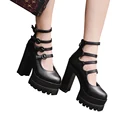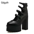 Gdgydh Fashion Buckle Punk Black Mary Janes Square Pumps Chunky Heel Platform Pumps Women Gothic Shoes Patent Leather Spring New