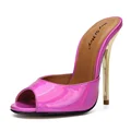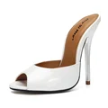 HeySiMey Sexy High Heels Women Slippers Outdoor Summer Designer Slides Women Mules Shoes Patent Leather Black White Flip Flops