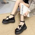 Good Chance for Gdgydh 2020 New Spring College Student Shoes Women Platform Shoes Black Leather Ankle-strap Chunky