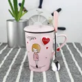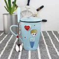 Cartoon Ceramic Mug 500ml Large Capacity Breakfast Milk mug Coffee Cup Lovers Cup with Cover Spoon Novelty Gifts