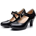 Fashion Spring Thick Heels Women Pumps Genuine Leather Work Shoes Woman High Heels Casual Women Shoes Plus size 34-43